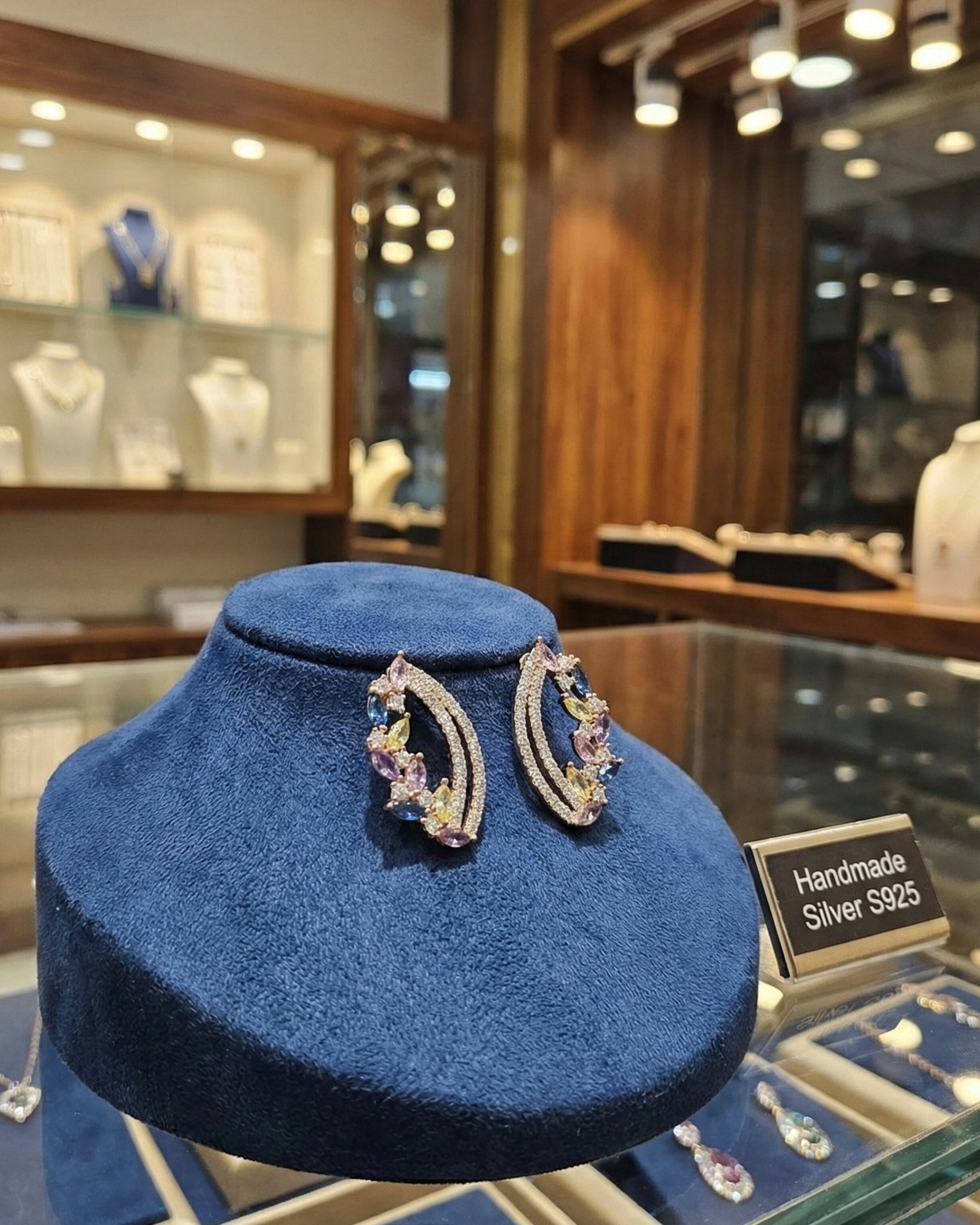 Why choose one color when you can wear them all? The Rainbow Prism Curve Earrings are designed for the modern woman who loves to shine. Featuring a unique open-work silhouette in blushing rose gold, these earrings showcase a stunning array of multi-colored gems that catch the light from every angle. The curved shape gently follows the contour of your ear, creating a flattering look that is both playful and luxurious.